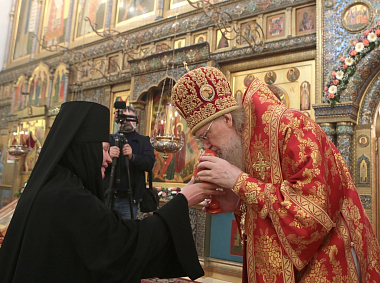 «Ваше преосвященство! Дорогой Владыка! В эти Пасхальные дни позвольте поздравить Вас с престольным праздником сей святой обители – днем памяти преподобных игумении Иулиании и монахини Евпраксии.