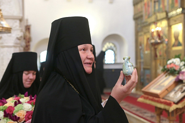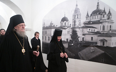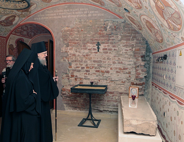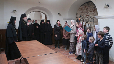 Престольный праздник обители продолжился экскурсией, которую игумения Иулиания провела для Его Преосвященства и гостей в подземной части собора с посещением келии преподобных Иулиании и Евпраксии, где воссоздана историческая обстановка XIV века.