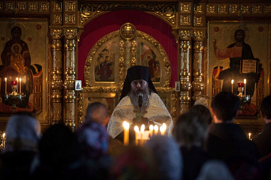 Накануне, 20 мая, в главном соборе обители игумен Валаамского монастыря епископ Троицкий Панкратий с духовенством совершил Всенощное бдение.
