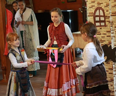 «Сегодня у нас праздник, посвященный Светлому Христову Воскресению. Так случилось, что мы не могли сразу после Пасхи устроить этот праздник, но до отдания Пасхи мы уложимся. Сегодня мы смотрим с вами спектакль, который подготовили дети. Они хотят показать вам эту сказку. Они волнуются, ведь вы будете оценивать их таланты и дарования. Но мы не судим строго, мы благодарим всех за участие в празднике».
