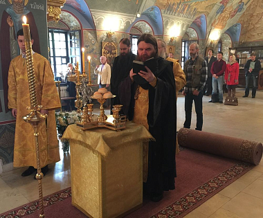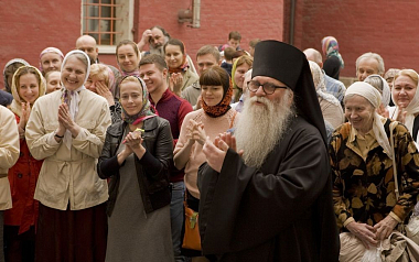 Братия, сотрудники московского подворья Соловецкого монастыря и прихожане храма Великомученика и Победоносца Георгия поздравили его настоятеля архимандрита Мефодия с днем тезоименитства: