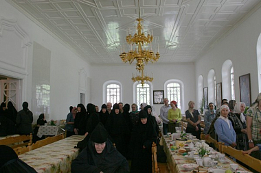 В этот праздничный день в обители были совершены две Божественные литургии: ранняя в первоосвященном храме в честь Иконы Божией Матери «Утоли моя печали» и поздняя в Казанском соборе.