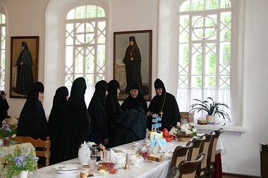 По окончании богослужения духовник обители архимандрит Поликарп поздравил настоятельницу игумению Сергию (Щербакову) и сестер с праздником, отметил значение пройденного пути и особо вспомнил насельниц, стоявших у истоков возрождения обители.