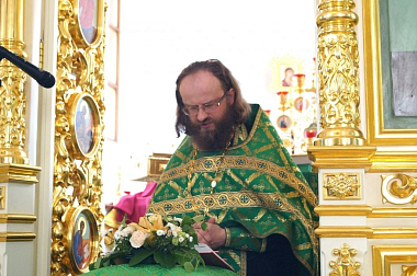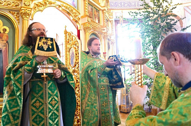 В этот день были совершены две Божественные литургии. Позднюю Литургию отслужили в главном алтаре Троицкого собора.