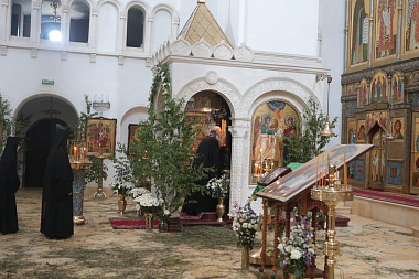 Божественную литургию в этот день совершил Председатель Синодального отдела по монастырям и монашеству архиепископ Сергиево-Посадский Феогност в сослужении монастырского духовенства.