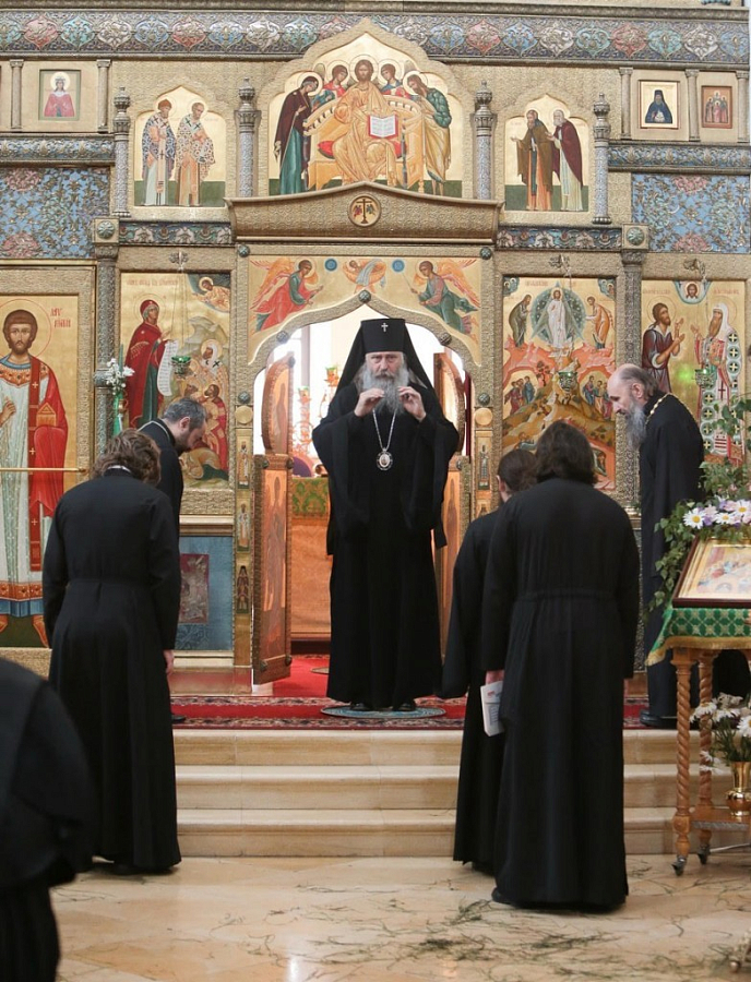 В завершение праздника Высокопреосвященнейший Феогност поздравил настоятельницу Зачатьевской обители, Заместителя Председателя Синодального отдела по монастырям и монашеству игумению Иулианию (Каледу) с сестрами, а также всех молящихся с престольным праздником и обратился с кратким словом о силе любви и единомыслия о Господе.