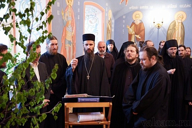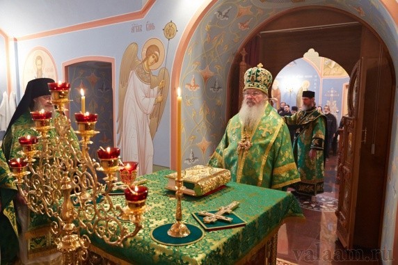 В этот день игумен Валаамской обители Преосвященнейший Панкратий возглавил Божественную литургию в недавно восстановленном храме Живоначальной Троицы.
