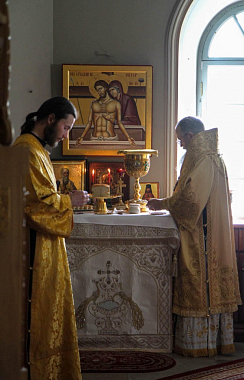 Божественную литургию в этот день возглавил игумен Валаамской обители епископ Троицкий Панкратий.