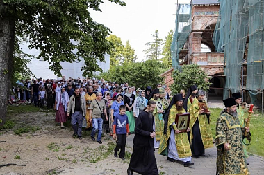 По окончании Литургии состоялся крестный ход вокруг Успенского собора обители.