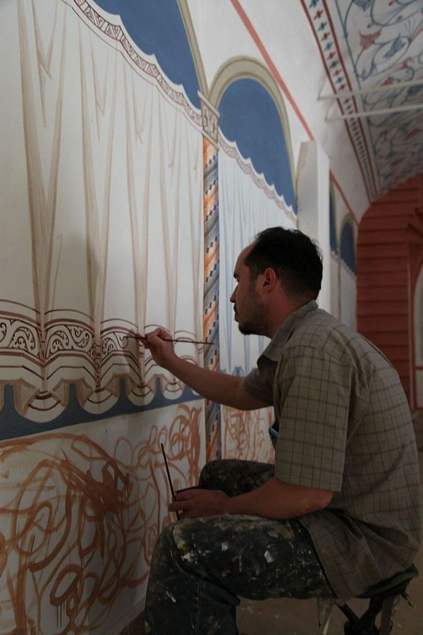 В Новоспасском ставропигиальном мужском монастыре в Никольском храме, возведенном в середине XVII века, заканчивается роспись трапезной части.