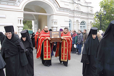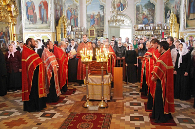 У святых врат обители мощи торжественно встретили настоятельница монастыря игумения Рафаила, духовенство, сестры и богомольцы. Под звон колоколов и пение тропарей мощи торжественно принесли в храм, где отслужили молебен с акафистом святому вмч. Георгию Победоносцу. Затем сестры обители до начала вечернего богослужения поочередно читали акафисты святым воинам. По окончании богослужения мощи были перевезены в г. Ровно на подворье Городокского женского монастыря.