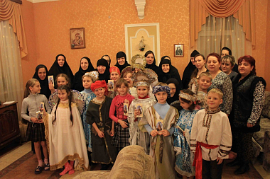 4 ноября, в день празднования Казанской иконы Божией Матери, воспитанники воскресной школы города Климовска показали небольшой концерт для сестер и паломников обители. По окончании концерта к детям с приветственным словом обратилась настоятельница монастыря игумения Екатерина (Чайникова). Она поблагодарила их за праздничный концерт и вручила небольшие подарки.