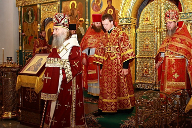По завершении Божественной литургии архиепископ Феогност произнес проповедь. Размышляя о том, что есть истинная вера, Владыка призвал не только веровать в то, что Господь есть истинный Бог наш, но, прежде всего, вверять себя всецело Богу, тем самым, доказывая свое доверие и покорность Господу и Его святой воле.