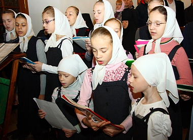 За богослужением молились почетные гости: ктитор обители президент компании ЗАО «Данвита» Виталий Иванович Даниленко, сотрудники компании ЗАО «Данвита». Пел хор Стефано-Махрищского монастыря (регент – монахиня Гавриила (Водолазова) и детский хор монастырского приюта для девочек под управлением монахини Амвросии (Елькиной).