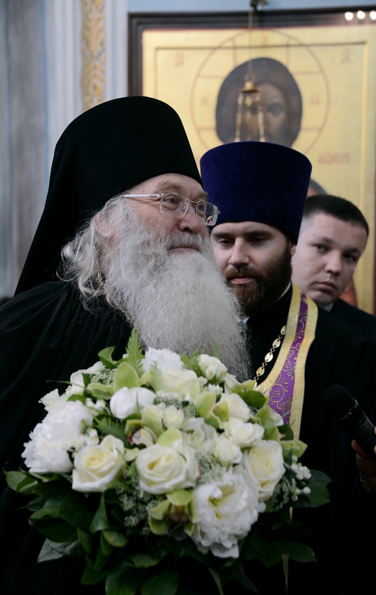 С самого начала своего служения здесь, став настоятелем собора Спаса Нерукотворного, Вы ревностно трудитесь на ниве Божией, стремитесь созидать сплоченную приходскую общину, отдавая все силы и дарования Церкви Христовой, воспитывая в пастве любовь к молитве и уставному богослужению, укрепляя ее в вере и призывая к нравственной чистоте и духовному совершенствованию.