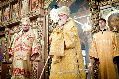 После окончания Литургии все желающие смогли продолжить общение за братской трапезой. В дружеской обстановке прозвучало множество теплых поздравлений и были оглашены поздравительные адреса по случаю празднуемых наместником дат.