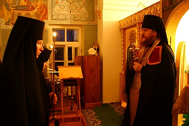 Постриг совершался в монастырском храме святых апостолов Петра и Павла накануне особо значимой даты в жизни обители: двадцать лет назад в день памяти пророка Даниила и трех отроков был переосвящен Петропавловский храм – первый храм, переданный возрождающемуся монастырю. В этот день в 1993 году в храме святых апостолов Петра и Павла прошла первая Божественная литургия в открывшейся обители.