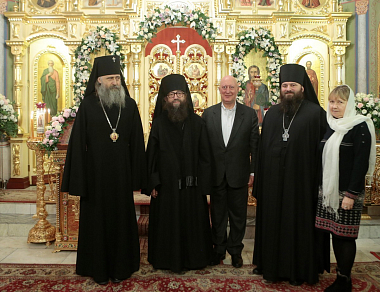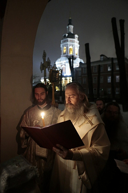 Чин Великого освящения, а затем Божественную Литургию возглавил Высокопреосвященнейший Феогност, архиепископ Сергиева Посада, Председатель Синодального отдела по монастырям и монашеству. Его Высокопреосвященству сослужили игумен Парамон, наместник Донского монастыря, братия Свято-Троицкой Сергиевой Лавры и Донского ставропигиального мужского монастыря.