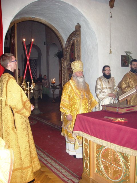 После Запричастного стиха проповедь произнес иеромонах Онисим (Бамблевский).
