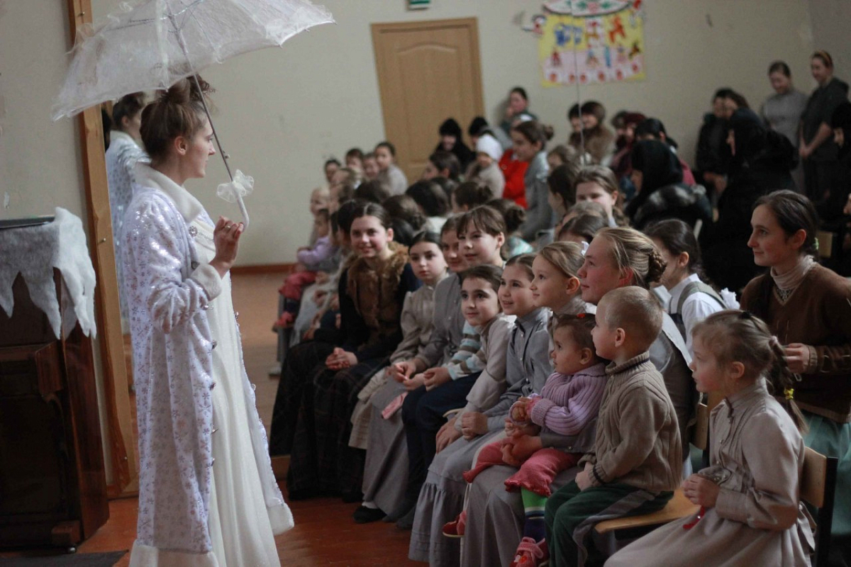 В перерыве между выступлениями и после концерта все вместе водили хороводы и играли. Матушка Екатерина подарила воспитанницам приюта подарки.