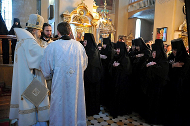 Божественную литургию возглавил архиепископ Сергиево-Посадский Феогност, председатель Синодального отдела по монастырям и монашеству.