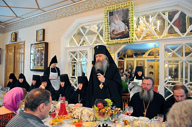 После Литургии была отслужена панихида, гостям была предложена поминальная трапеза. Пюхтицкие сестры с гостями посетили могилу приснопоминаемой Матушки на монастырском кладбище.