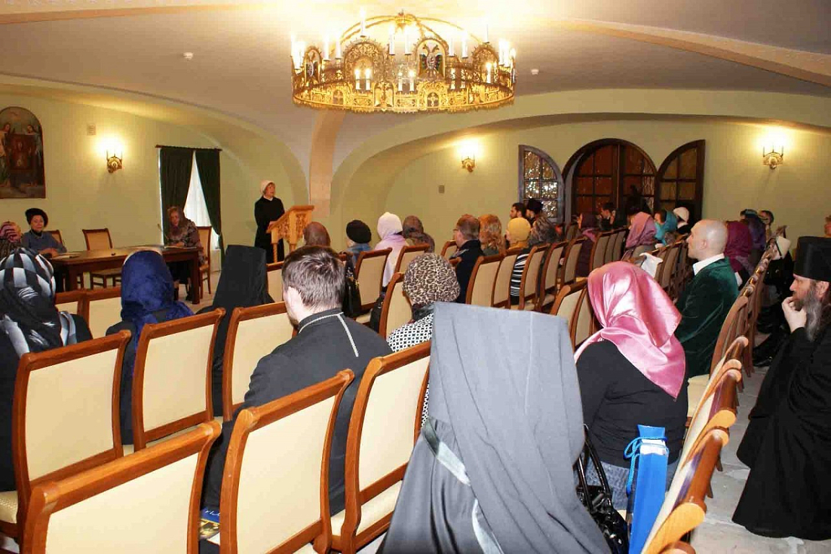 С приветственным словом к собравшимся обратилась Белогубова Марина Николаевна, которая передала добрые пожелания в работе Чтений от полномочного представителя Президента РФ в Центральном федеральном округе Александра Дмитриевича Беглова. Настоятельница Игумения Викторина выступила с докладом «Княгиня Мария Ивановна Серпуховская – устроительница обители». Протоиерей Алексий Ладыгин представил большой доклад «Великая княгиня Евдокия Московская – святая покровительница Москвы». Любовь Сергеевна Акелина сделала интересный доклад «Мать героя». Людмила Евгеньевна Морозова выступила с содержательным докладом «Преподобный Сергий Радонежский и московские княгини». Иеромонах Тихон (Яковлев) представил доклад «Княгиня Елена Ольгердовна», из которого слушатели узнали много интересных фактов о благочестивой жизни в княжеских семей. Нина Борисовна Жукова выступила с сообщением, в котором сказала о важности примера великих русских женщин для наших современников.