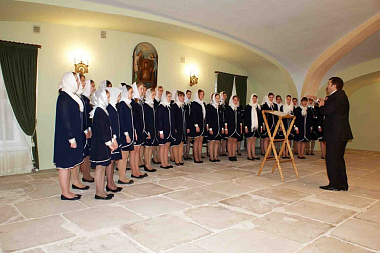 Чтения завершились небольшим концертом детского хора «Синяя птица» школы № 1245 Северного Бутова (художественный руководитель Воронов Петр Николаевич), лауреата международных конкурсов, прекрасно исполнившего целый ряд произведений духовных композиторов.