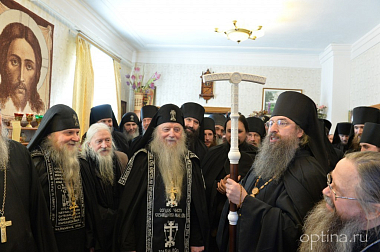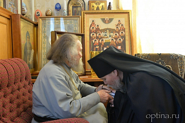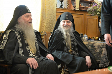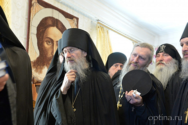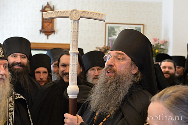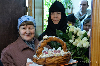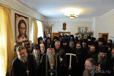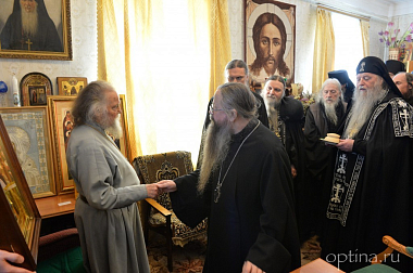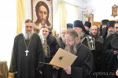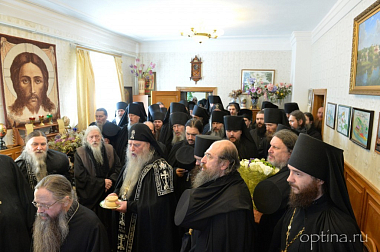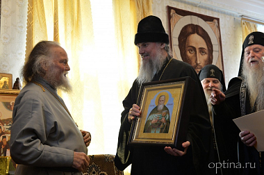 Также архимандрита Венедикта поздравили с днем тезоименитства настоятели Оптинских подворий: архимандрит Мелхиседек (Артюхин), настоятель подворья в г. Москве, и игумен Арсений (Мосалев), настоятель подворья в Санкт-Петербурге. Братия обители преподнесла в подарок наместнику Оптиной пустыни игуменский жезл.