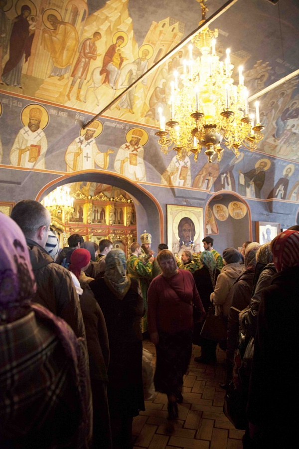 За богослужением Владыке сослужили игумен Паисий (Юрков), благочинный обители, и братия монастыря в священном сане. За Литургией пел хор Новоспасского монастыря под управлением регента С.П. Кирюшина. Святых Христовых Таин в этот день приобщились более 700 человек.