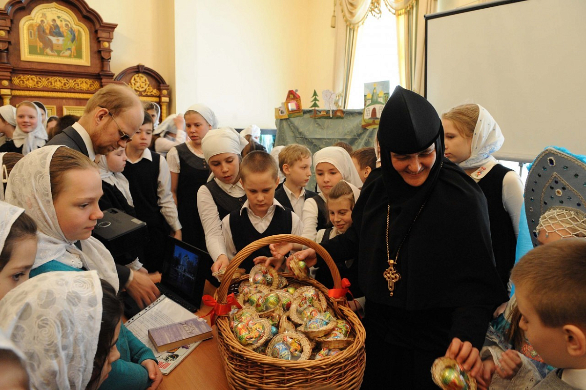 В заключение игумения Феофания обратилась к детям, родителям, педагогам и гостям со словами поздравления со Святым Христовым Воскресением и вручила всем участникам пасхальные подарки.