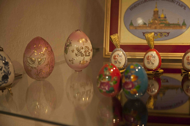 Из экспонатов особо следует выделить пасхальные яйца разных лет; среди них – подарки Владыки Алексия (Фролова).