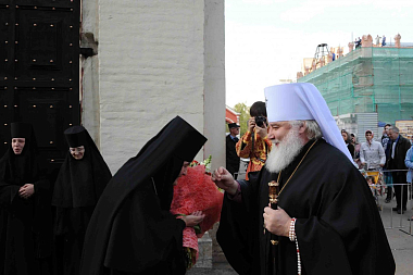 По окончании богослужения митрополит Истринский Арсений поздравил верующих с праздником и обратился к ним с архипастырским словом.