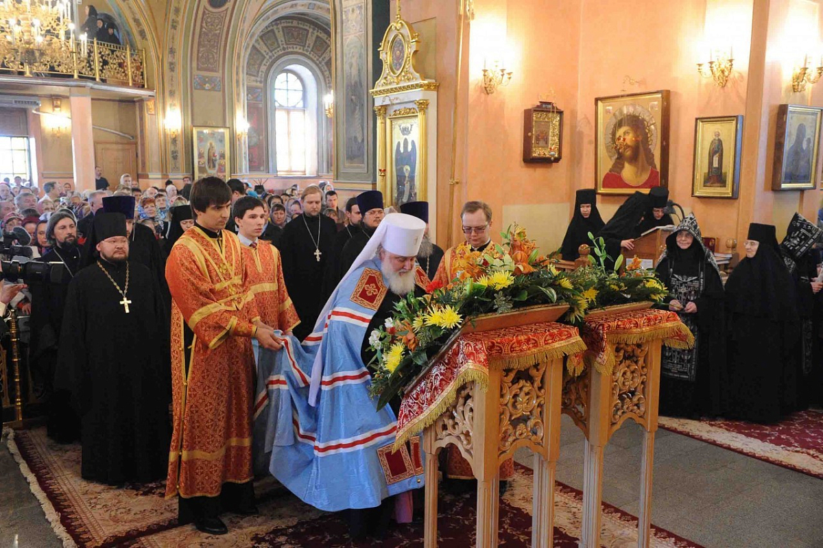 1 мая 2014 г. по благословению Святейшего Патриарха Московского и всея Руси Кирилла в Покровском ставропигиальном женском монастыре в Москве Всенощное бдение с чтением акафиста святой праведной блаженной Матроне Московской возглавил первый викарий Святейшего Патриарха по городу Москве, управляющий Центральным и Южным викариатствами столицы митрополит Истринский Арсений.
