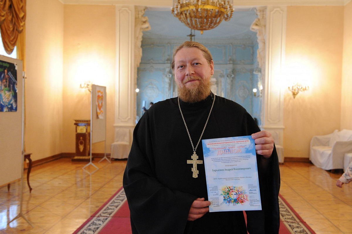 За высокий профессионализм и педагогическое мастерство, проявленные при подготовке учащихся и воспитанников к конкурсам Московского Международного Форума «Одаренные дети» в 2014 году, дипломом награжден духовник гимназии иерей Андрей Бархатнов.
