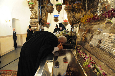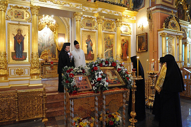 Высокие гости поклонились мощам святой праведной блаженной Матроны Московской. В память о посещении обители им была подарена икона святой Матроны.