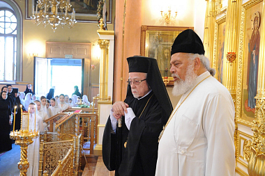 Митрополита Антония сопровождал представитель Патриарха Антиохийского при Патриархе Московском и всея Руси архиепископ Филиппопольский Нифон (Сайкали).