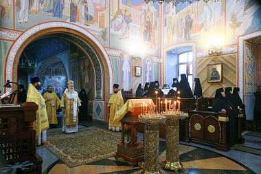 Церковные песнопения исполнил хор сестер монастыря под управлением монахини Гавриилы (Водолазовой).