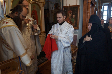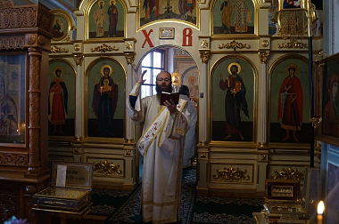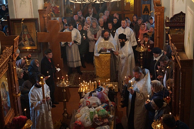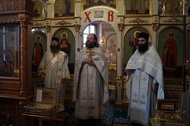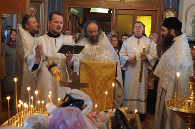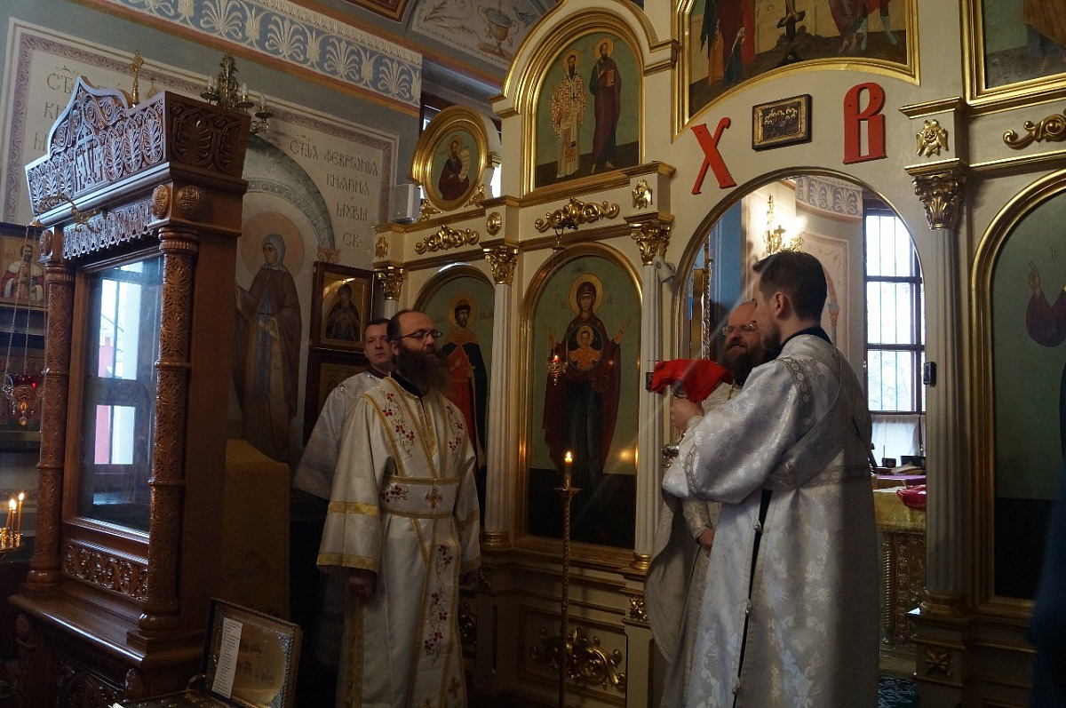 Гости в священном сане: иеромонах Василий, студент Московской духовной семинарии, и иеродиакон Иларион, клирик Антиохийского подворья, учащийся Общецерковной аспирантуры и докторантуры, – приняли участие в служении Божественной литургии и панихиды по случаю Димитровской родительской субботы.