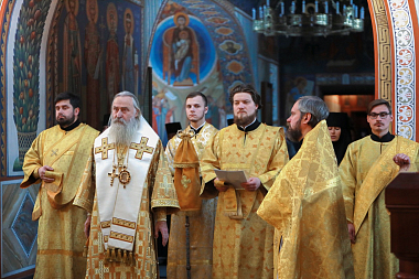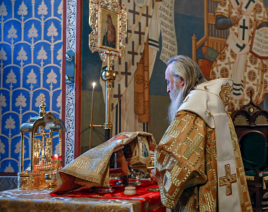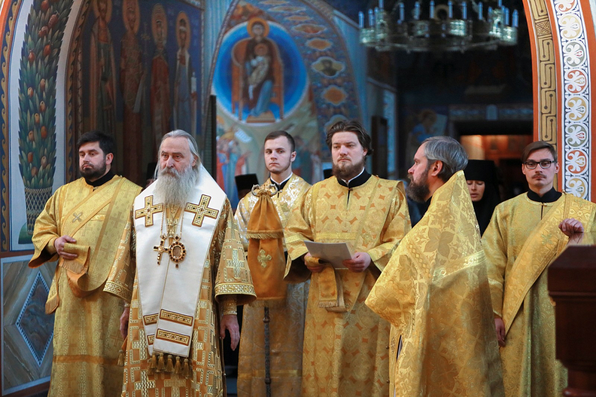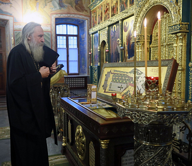 В завершение архиепископ Феогност поздравил всех с праздником и произнес проповедь на дневное евангельское чтение (Лк., 37 зач., VIII, 22–25) о предании всего совершающегося в жизни христианина в руки Божии. Владыка привел в пример житие священноисповедника Афанасия, который из 25 лет архиерейства почти 22 года провел в тюрьмах, лагерях и ссылках, и проявил в этих тяжелых условиях удивительную стойкость и преданность воле Божией.