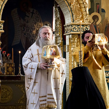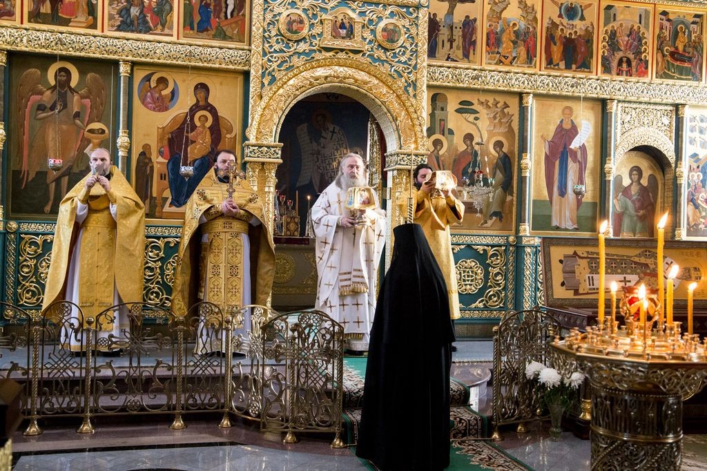 Владыка возглавил Божественную литургию в Троицком храме монастыря.