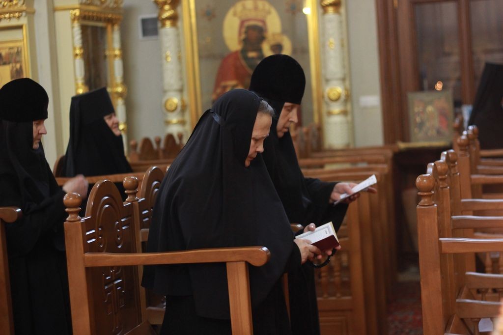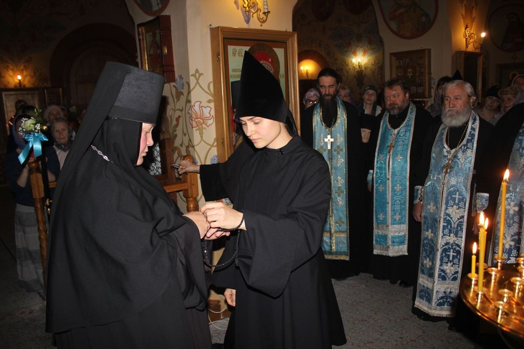 Накануне в Иерусалимском храме было совершено всенощное бдение. За богослужением по окончании кафизмы настоятельница монастыря игумения Екатерина (Чайникова) одела в связку насельницу обители послушницу Калису.