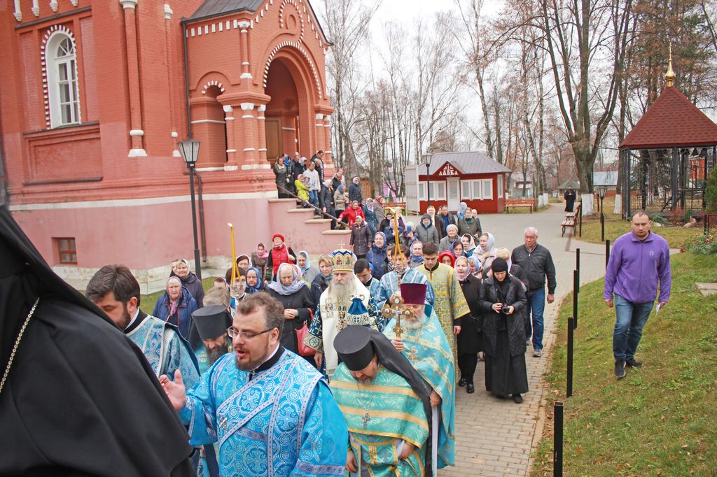 По окончании богослужения был совершен крестный ход в монастырский Иерусалимский храм, где владыка Феогност отслужил молебен перед чтимой иконой Божией Матери Иерусалимской.