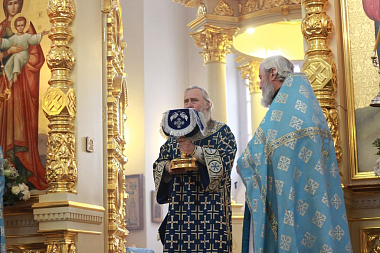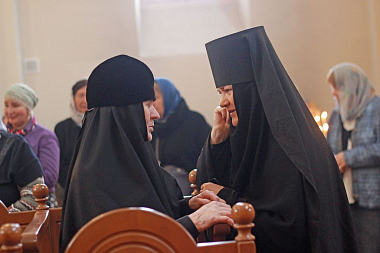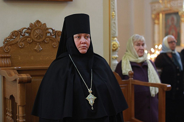 По окончании молебна архиепископ Феогност поздравил игумению Екатерину с престольным праздником и произнес проповедь: