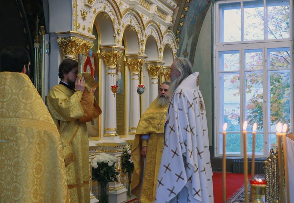 16 октября 2020 года, в день памяти сщмч. Дионисия Ареопагита, епископа Афинского, сщмч. Рустика пресвитера и Елевферия диакона, председатель Синодального отдела по монастырям и монашеству архиепископ Каширский Феогност возглавил Божественную литургию в Богородице-Рождественском ставропигиальном женском монастыре.