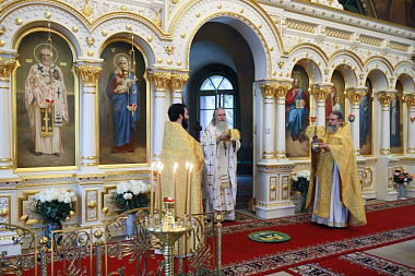 Его Высокопреосвященству сослужило монастырское духовенство.