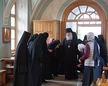 По окончании Литургии владыка Феогност обратился к сестрам и прихожанам обители с отеческим словом.