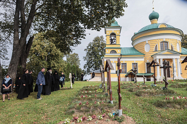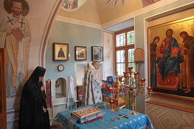 5 сентября 2020 года, в день отдания праздника Успения Божией Матери, на подворье Покровского Хотькова ставропигиального женского монастыря в Горошкове, председатель Синодального отдела по монастырям и монашеству архиепископ Каширский Феогност возглавил Божественную литургию.