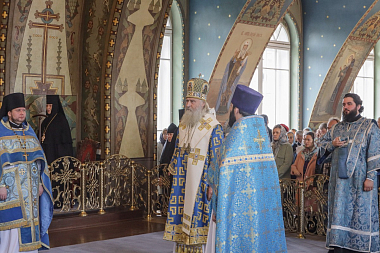 После крестного хода архиепископ Феогност передал игумении Викторине с сестрами, прихожанам и паломникам поздравление Святейшего Патриарха Московского и всея Руси Кирилла с престольным праздником обители и Первосвятительское благословение и обратился к собравшимся с архипастырском словом. Владыка отметил, что верующие должны помнить о том, что душа больше тела и, что человек призван к вечности. А Матерь Божия и святые – это наши молитвенники, которые помогают идти по земной дороге, среди бурных волн житейского моря, в вечность.