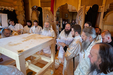Затем архиепископ Феогност и епископ Парамон совершили Божественную литургию в новоосвященном храме.